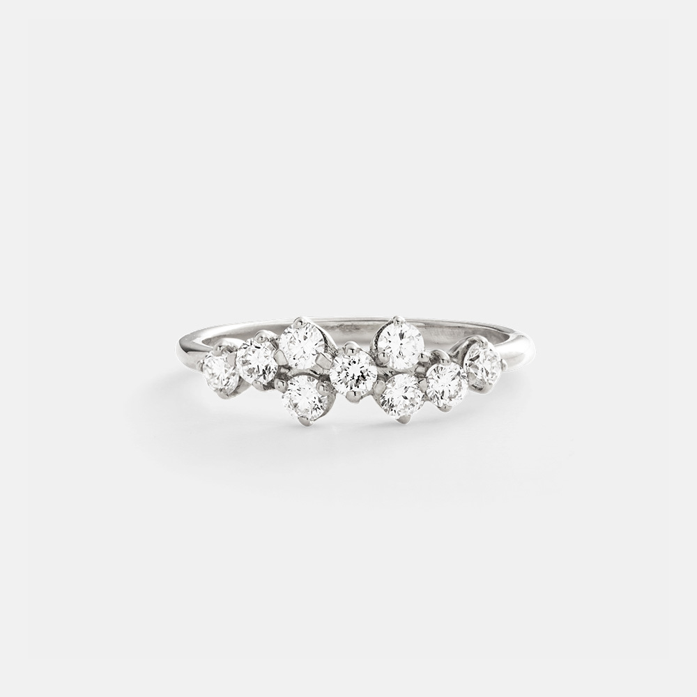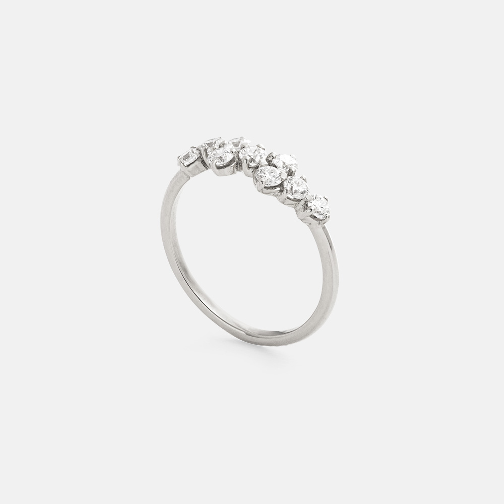 L’anello Lumina è una sintesi perfetta di eleganza e originalità, con diamanti da 0,46 carati totali che brillano in una disposizione sfalsata, esaltando la bellezza e la luce di ciascuna gemma.
