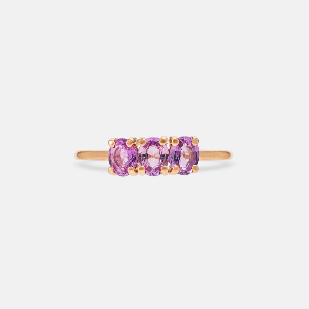 Anello Trilogy in Oro Rosa con Zaffiri Rosa Ovali.