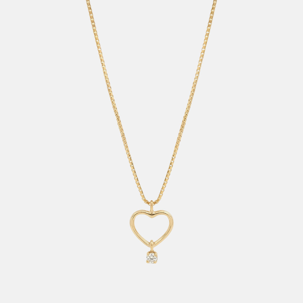 La catena Filodoro in oro 18 kt accoglie un delicato cuore, impreziosito da un diamante da 0,025 ct che cattura la luce con raffinata discrezione.